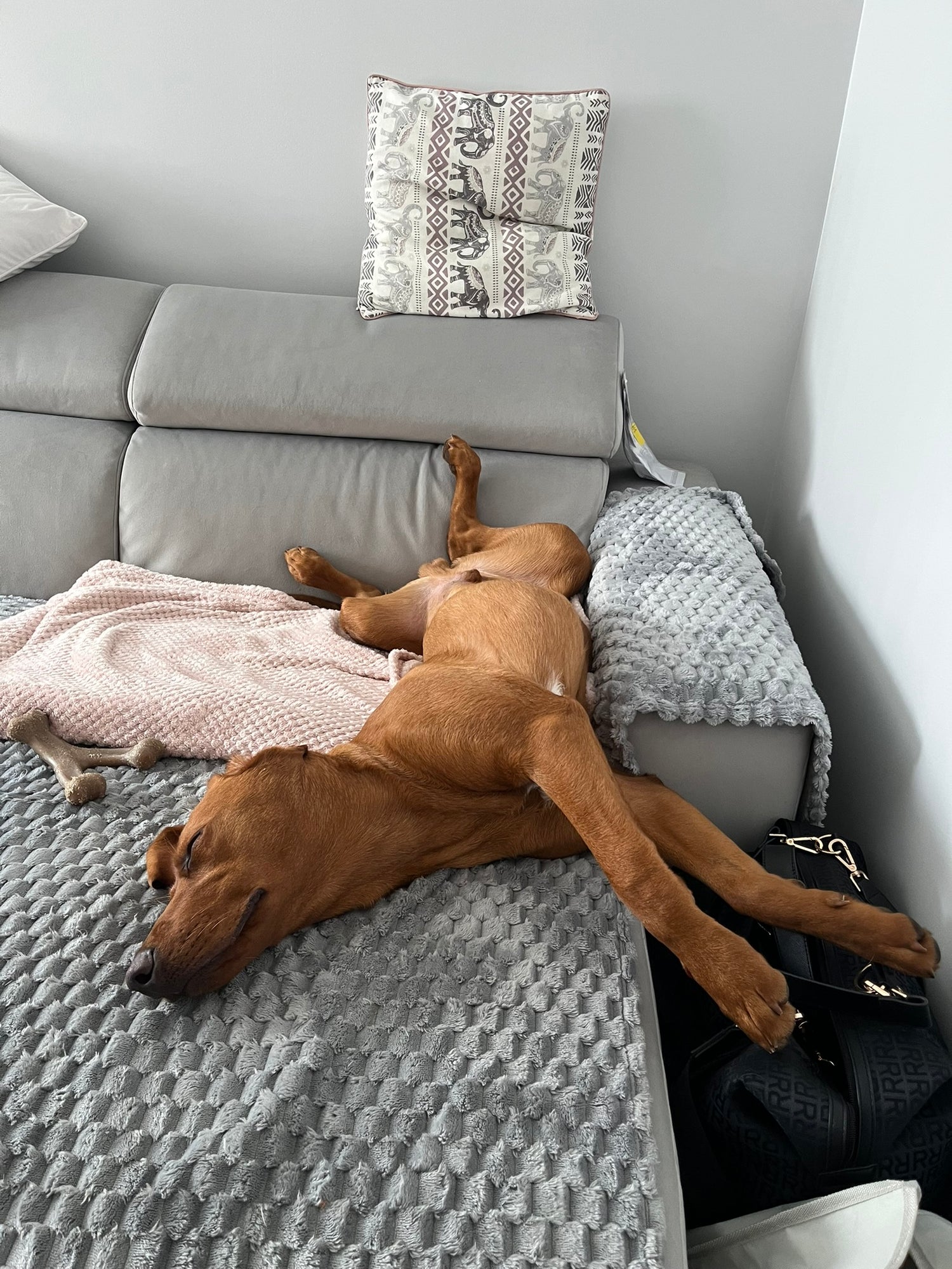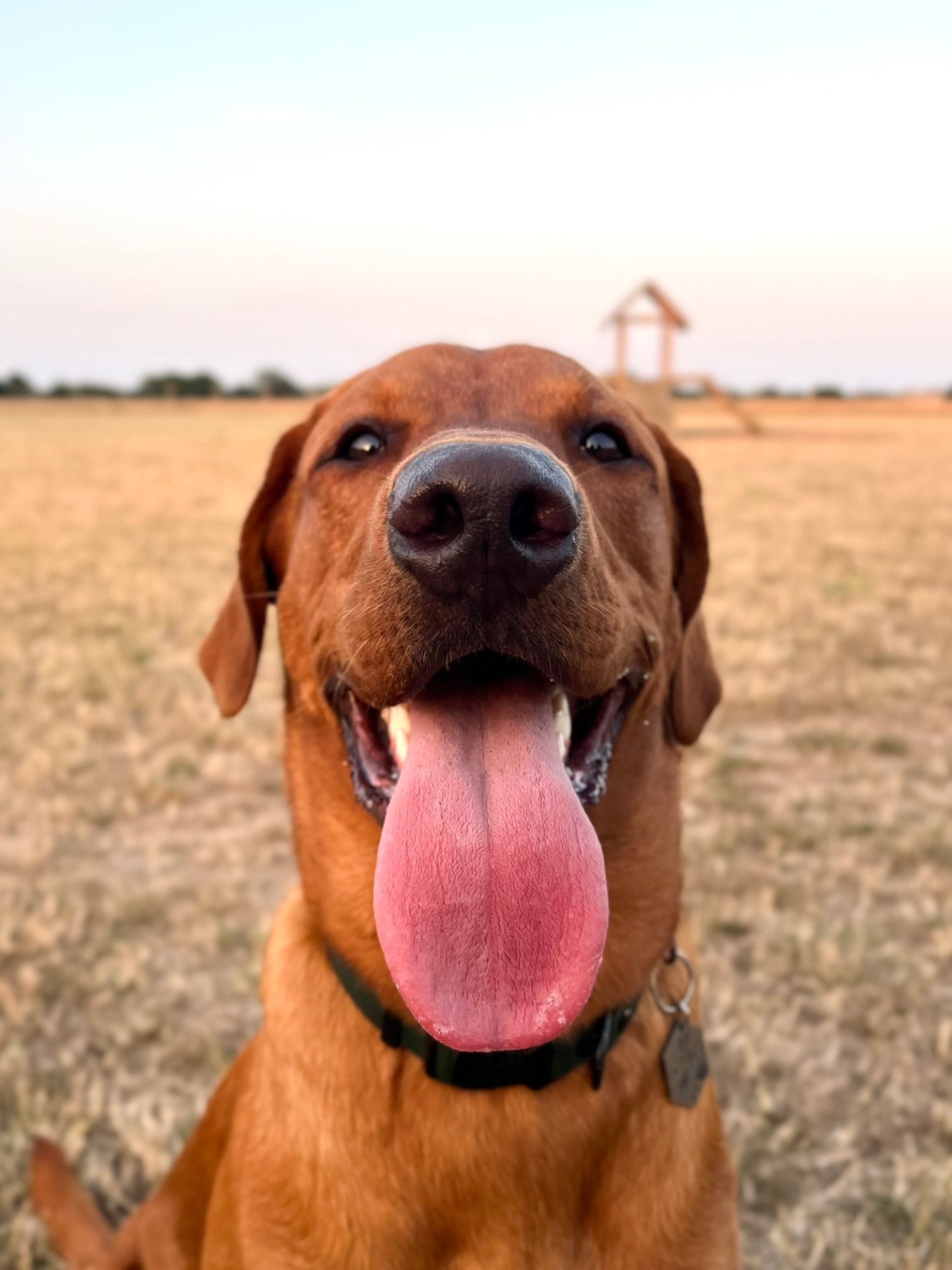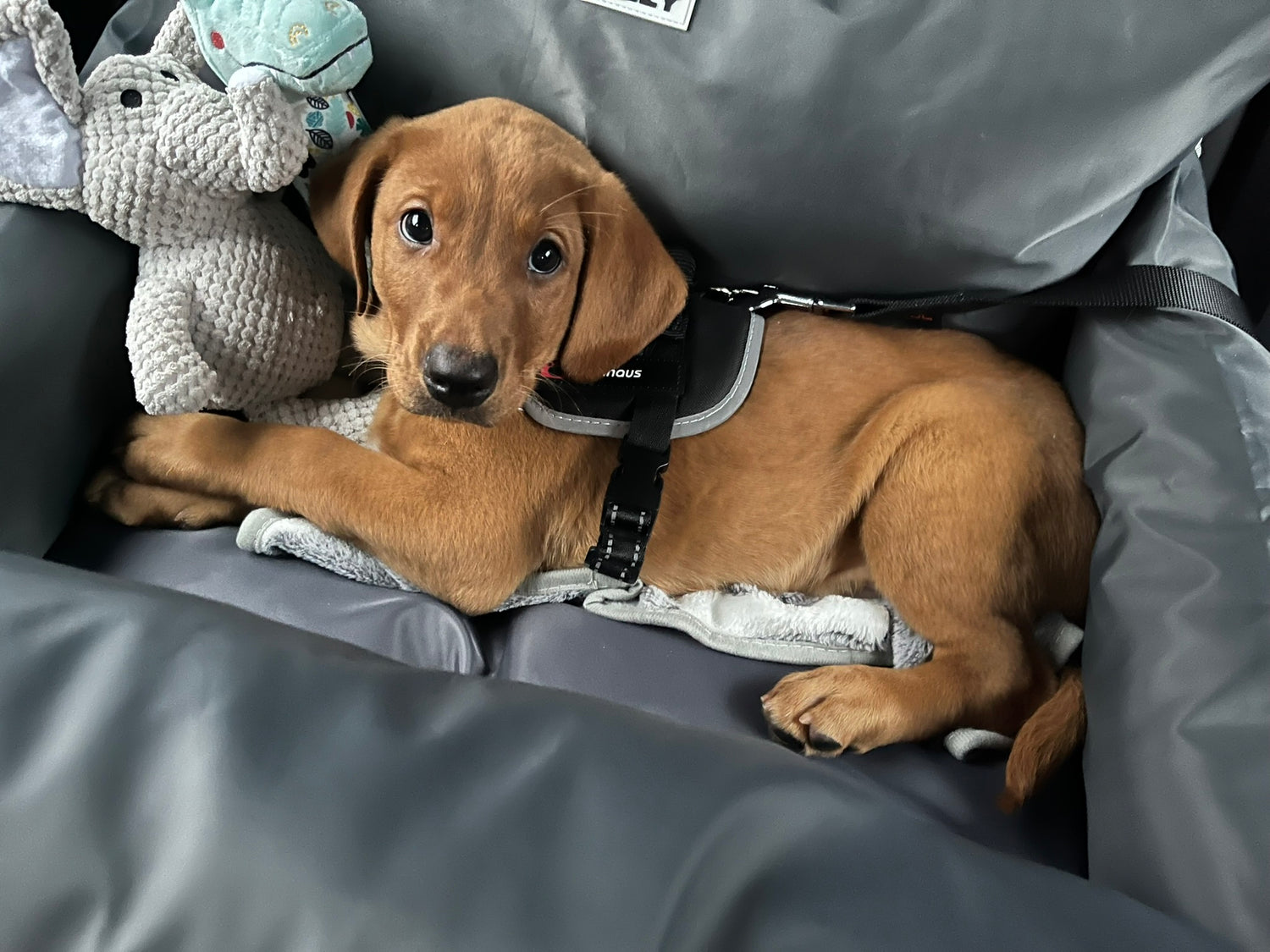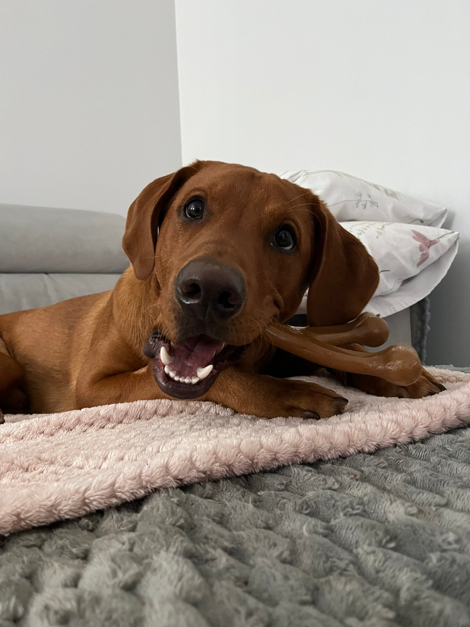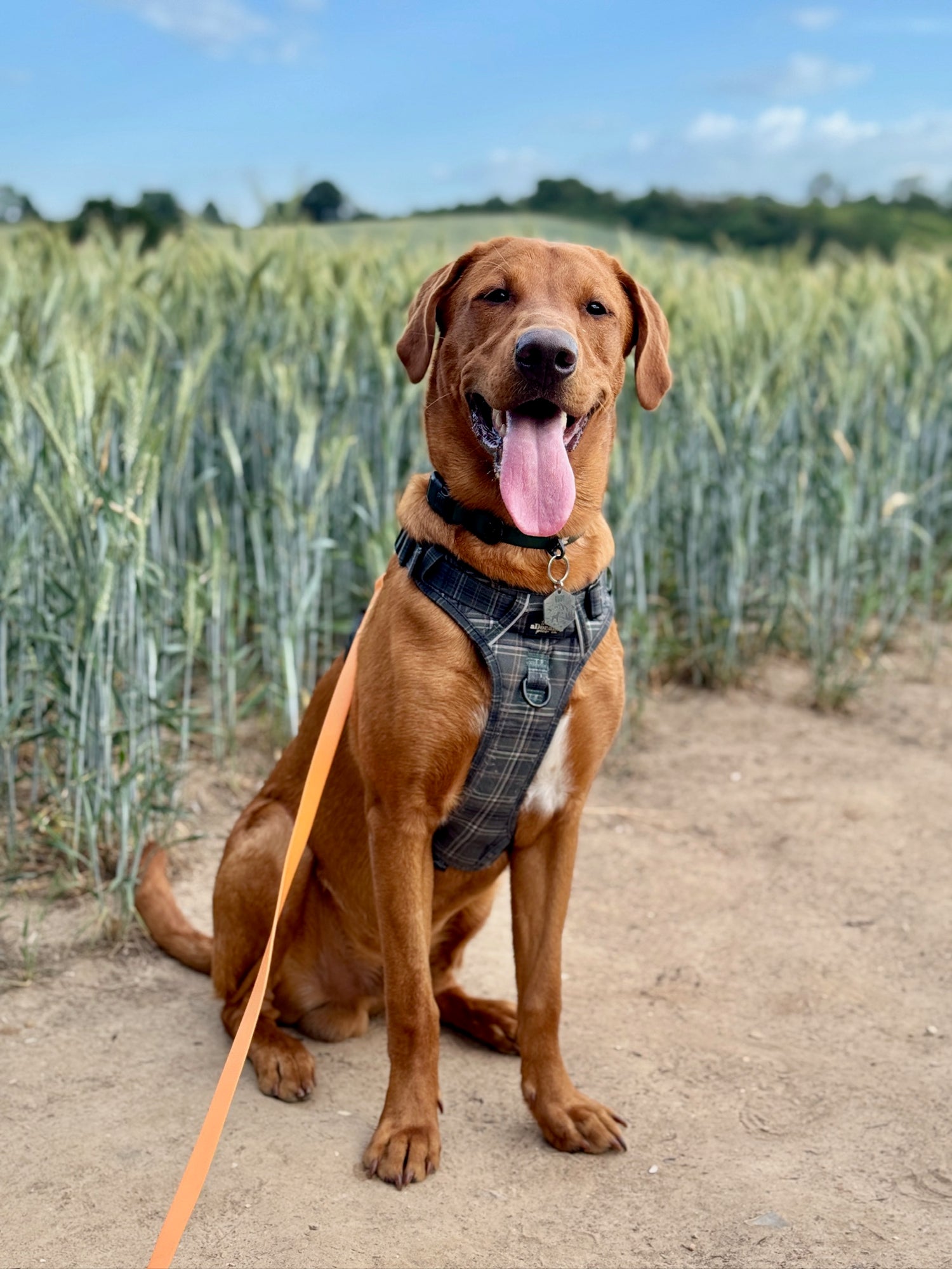 I was born on 30th September 2024, and I’m already 38kg of pure ginger muscle (Mum still calls me her baby 🙄). I’m a KC Registered Red Fox Labrador — but don’t let the fancy title fool you. I’m happiest covered in mud, belly-up napping, or stealing anything I can get my paws on.