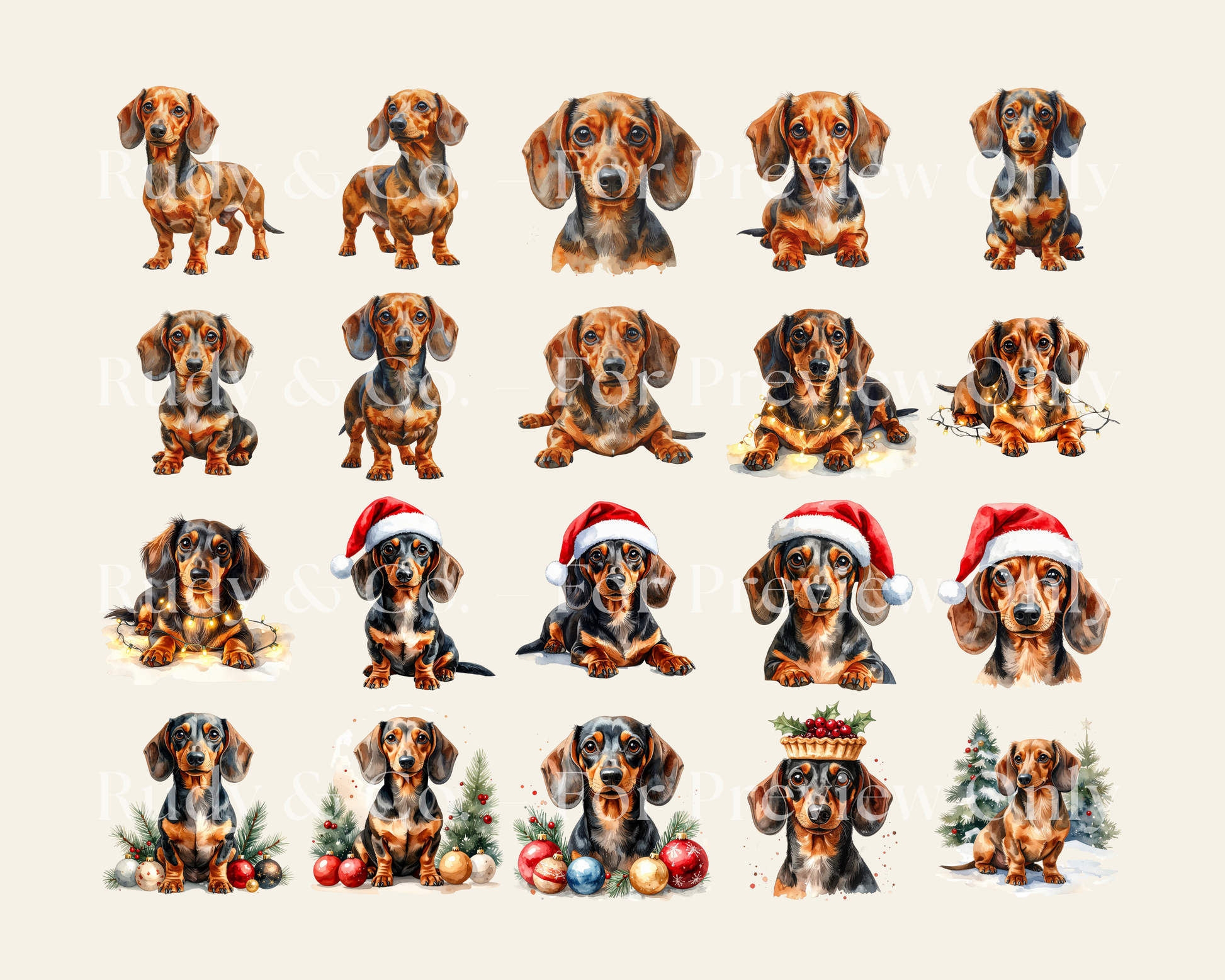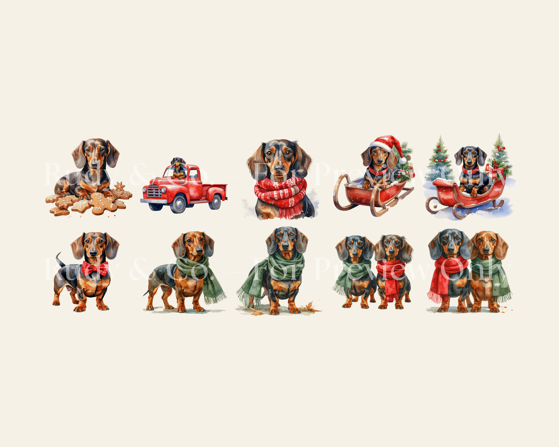 Christmas Dachshund Mega Clipart Bundle – 50 Watercolour PNGs (Instant Download)