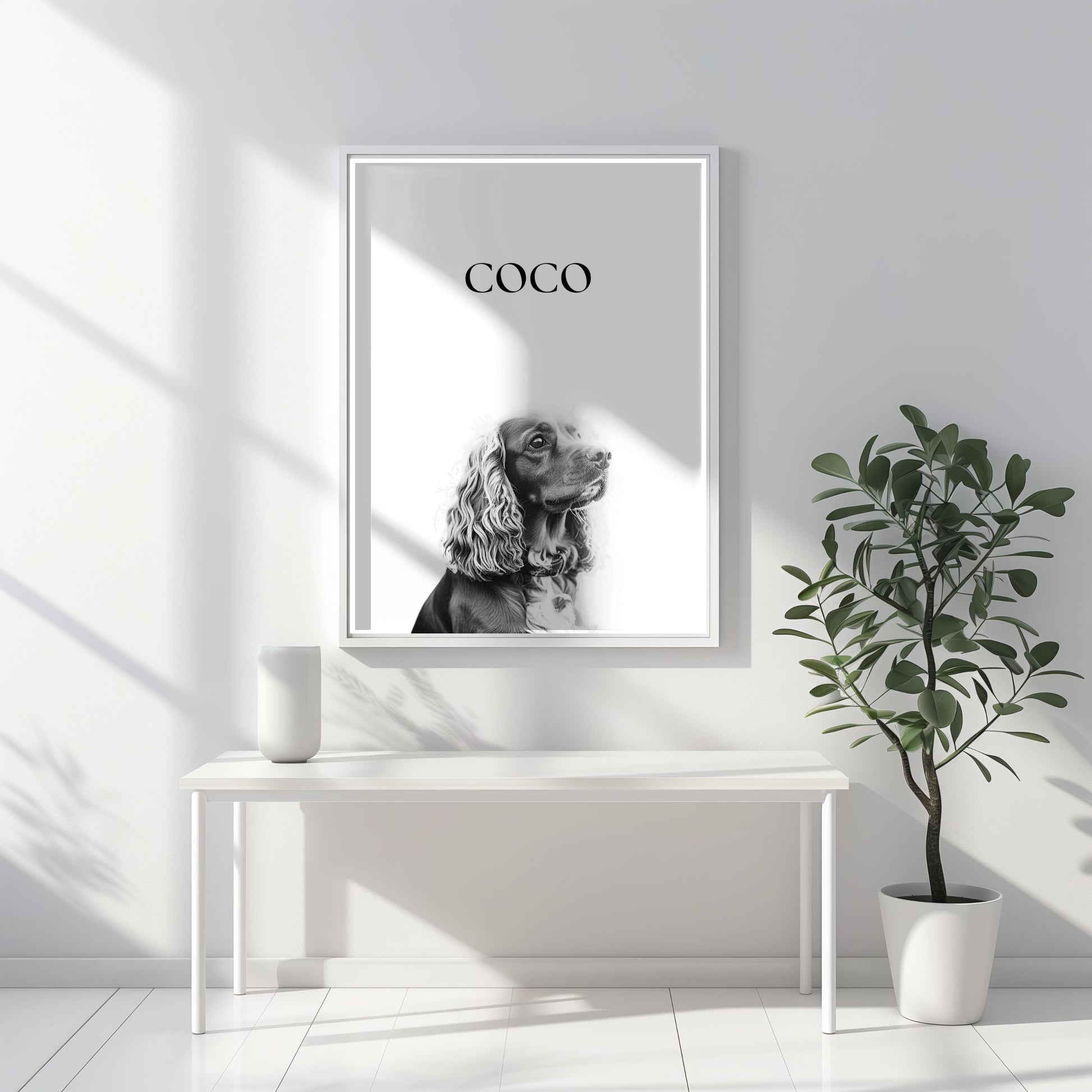 Each piece is lovingly created from your photo and transformed into a black and white fine-art digital print, complete with your pet’s name in elegant text.