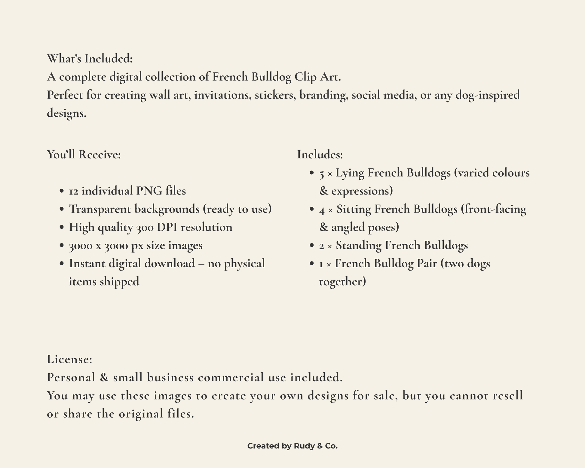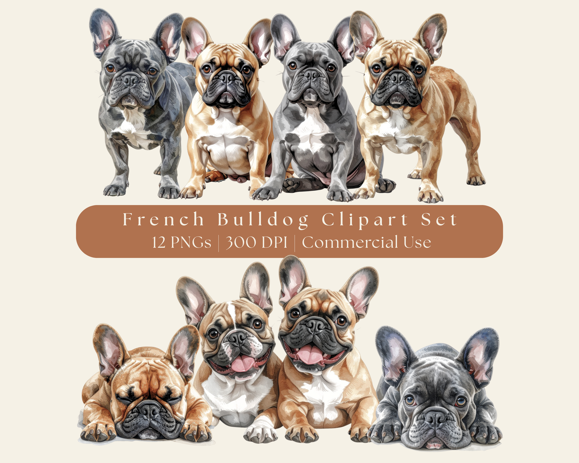Bring charm and personality to your designs with this French Bulldog watercolor clipart bundle, featuring a collection of beautifully illustrated Frenchies in a variety of poses.