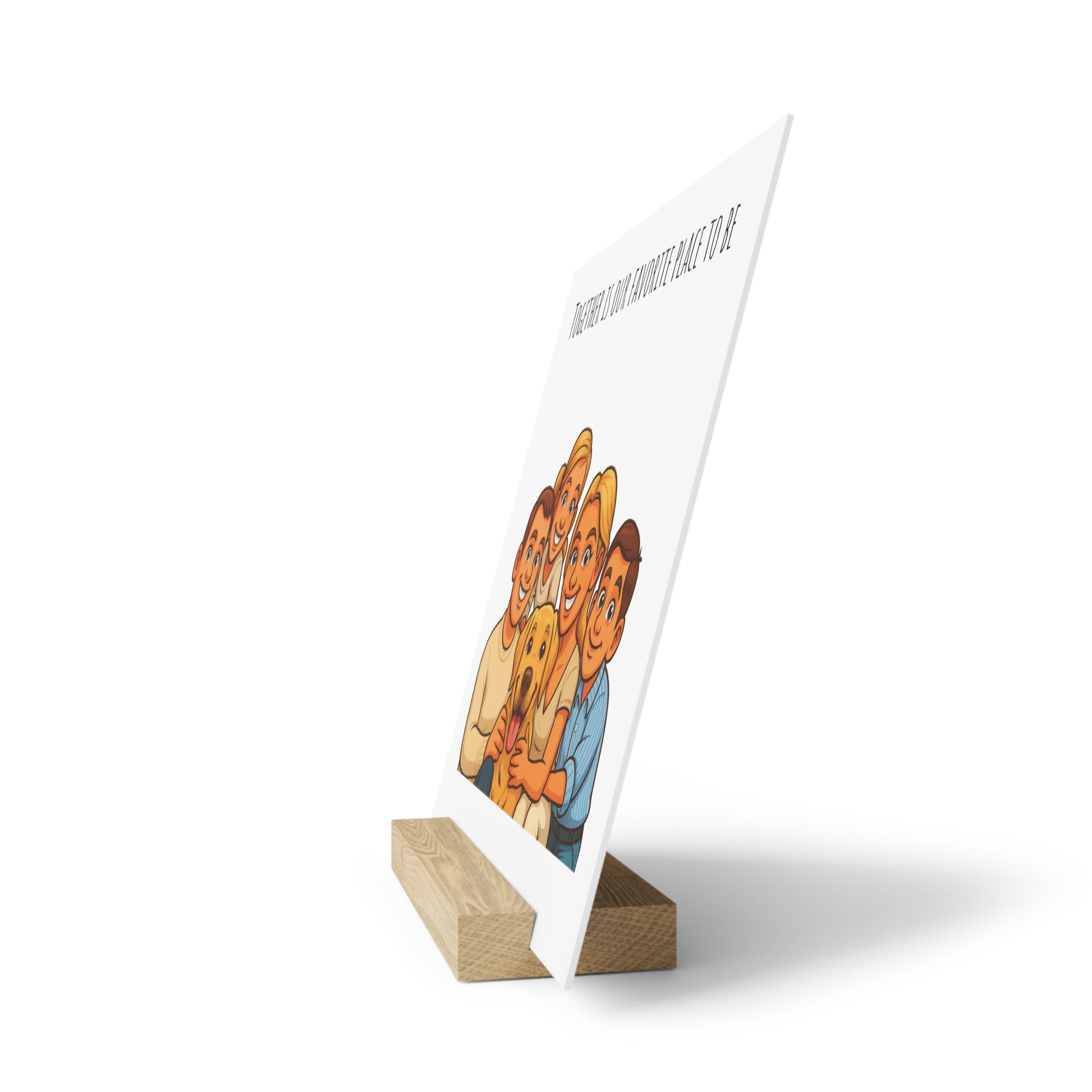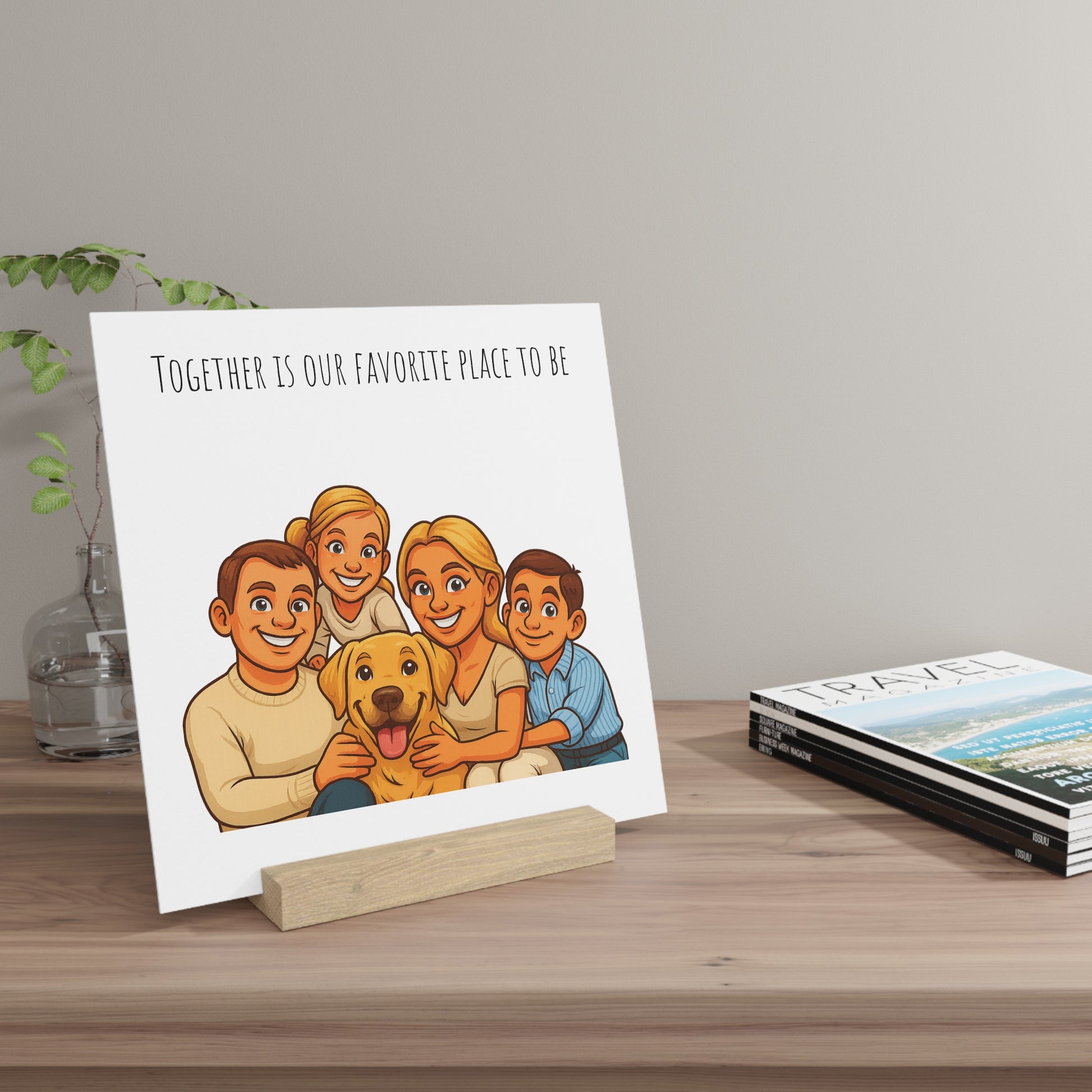 Bring joy and personality into your home with this Personalised Caricature Gallery Board with Stand. Featuring a vibrant, cartoon-style illustration of your family and pets, this piece transforms cherished memories into playful, one-of-a-kind art. The solid oak stand adds warmth and elegance, while the high-quality Giclée finish ensures your caricature is displayed with striking detail and texture.