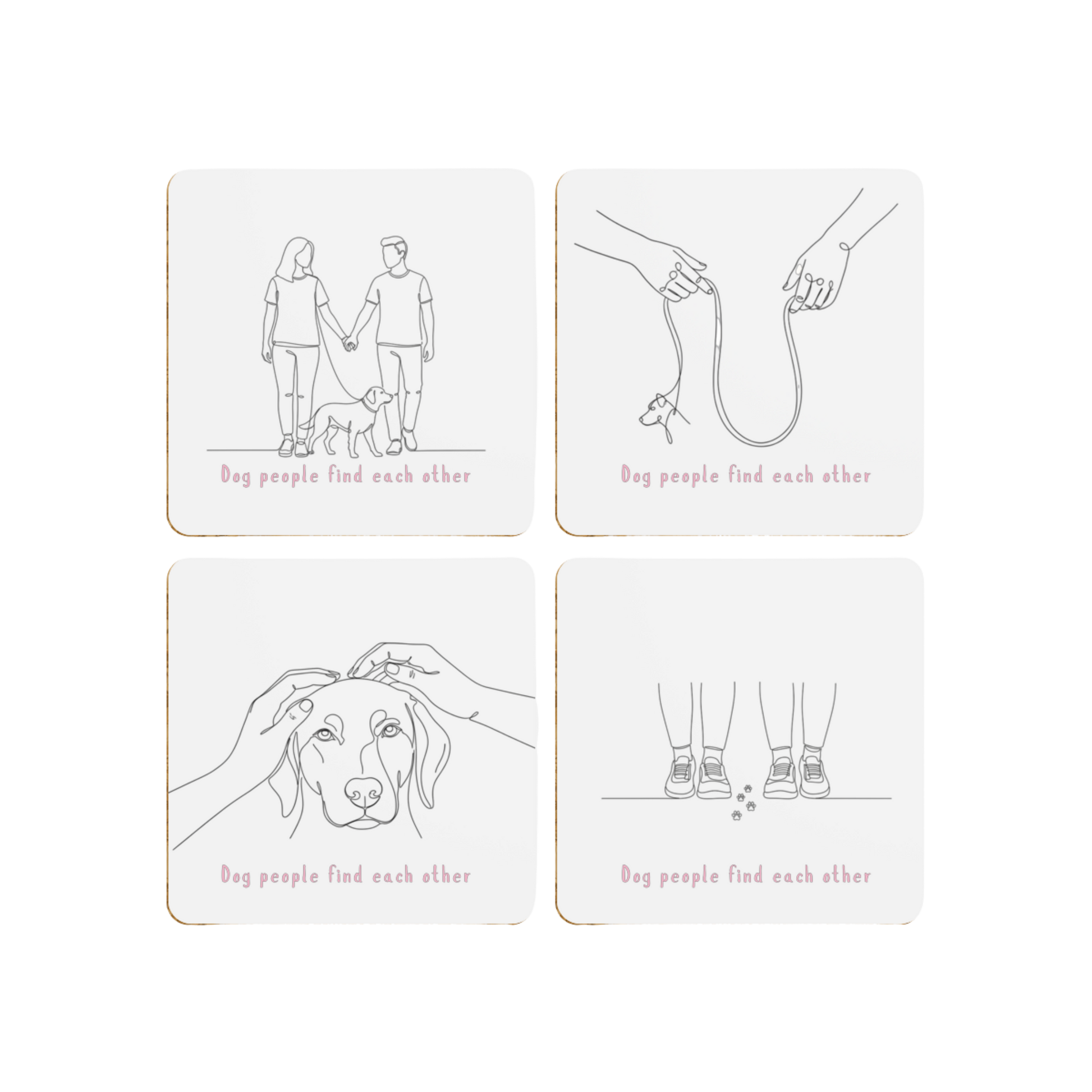 A soft, minimal coaster set designed for dog lovers who know that paws bring people together. Featuring four modern line-art illustrations in a clean, romantic style, each coaster expresses the simple truth that dog people find each other.