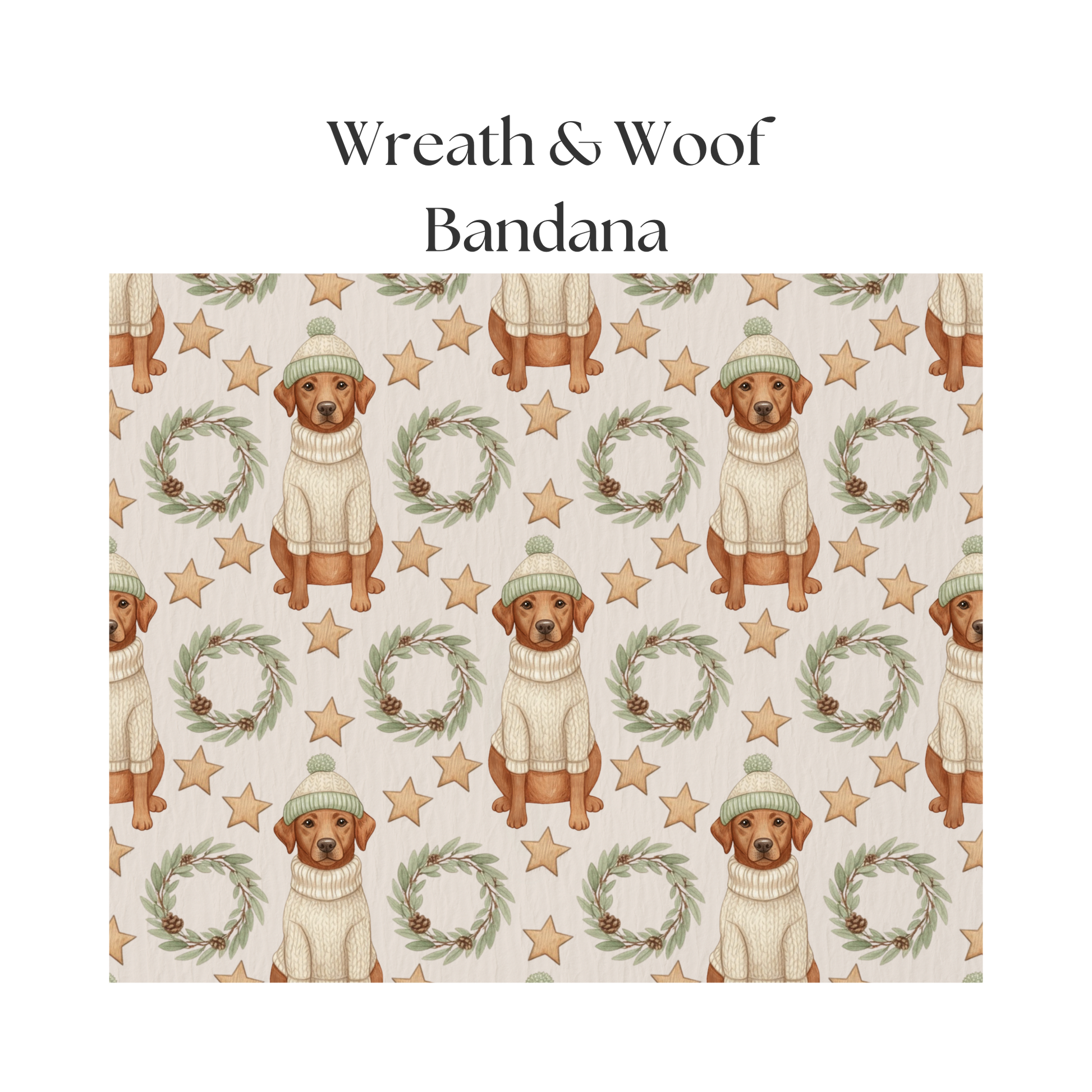 Showcasing adorable Labradors in chunky knit sweaters alongside festive wreaths and star accents, this design blends charm and comfort in every detail. Perfect for holiday photos, winter walks, and everything in between.